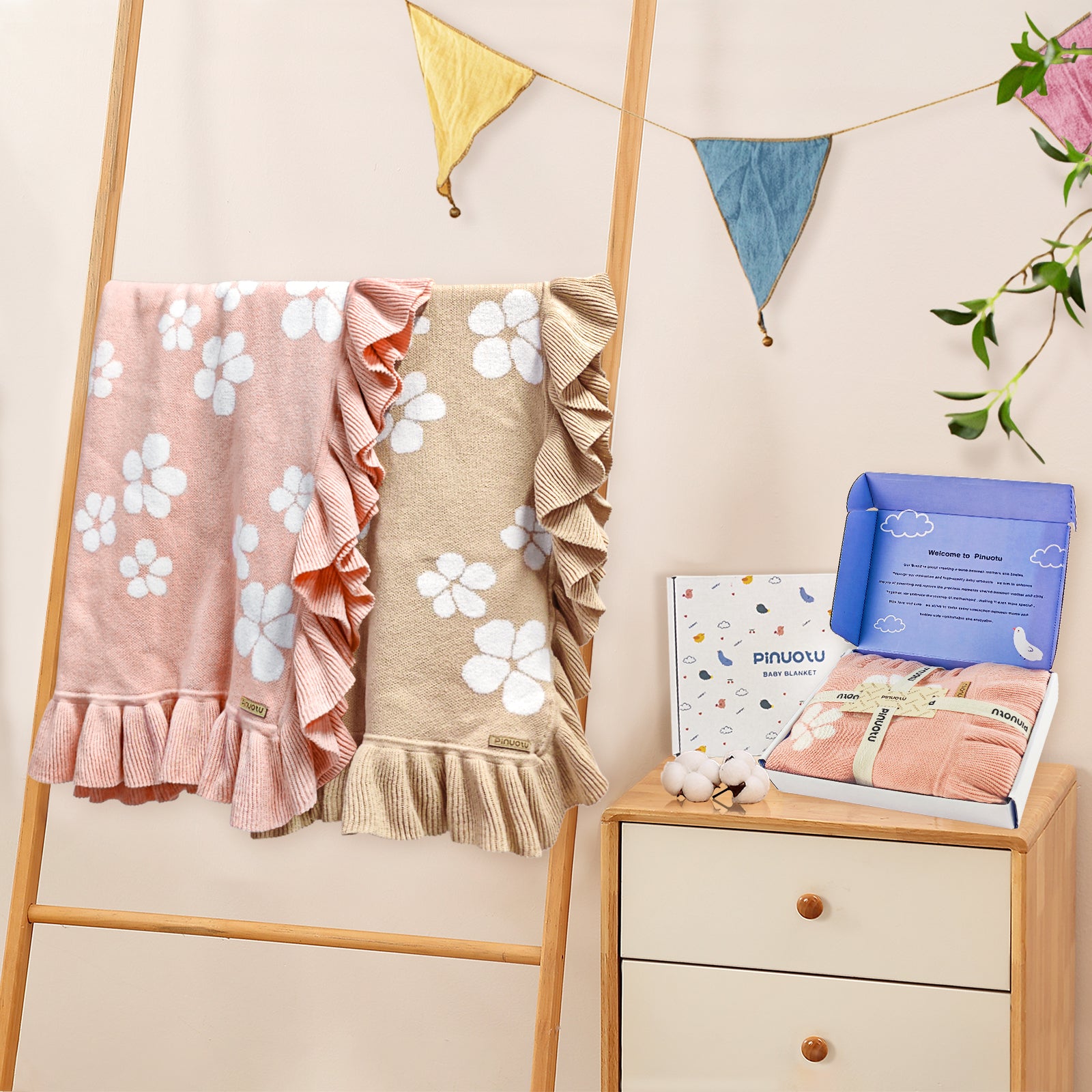 This 100% cotton knit baby blanket is soft, breathable, and gentle on delicate skin, perfect for your little one year-round. At 31x40 inches, it’s the ideal size for naps, tummy time, or use in strollers and cribs. The versatile design works as a swaddle or bassinet cover. Machine washable and durable, it keeps its softness after every wash. Packaged in a luxury gift box, it makes a thoughtful newborn gift for baby showers or birthdays.